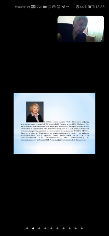 10 февраля 2022 года в Институте экономики и управления в рамках празднования юбилейных мероприятий прошла открытая лекция доцента кафедры экономической теории, государственного и муниципального управления С.Б. Сандановой. В своем выступлении Светлана Борисовна раскрыла основные исторические вехи с момента организации высшего учебного заведения на территории Республики Бурятия. Особое внимание было уделено развитию экономического образования в нашем университете.