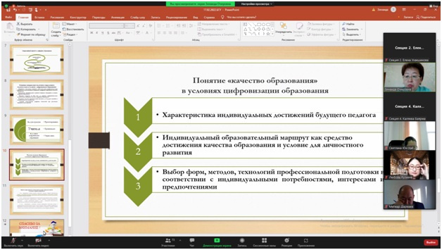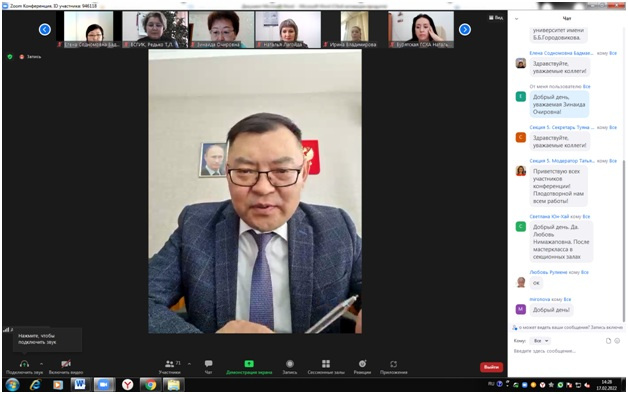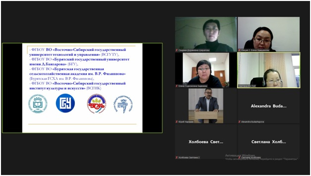 В пленарном заседании приняли участие 75 человек. С докладами выступили: Тамьяров А.В., к.т.н., доцент, начальник управления лицензирования, аккредитации и качества образования, ФГБОУ ВО "Ульяновский государственный технический университет" (г. Ульяновск), Имескенова Э.Г., к.сх.н., доцент кафедры ландшафтного дизайна и экологии, проректор по учебно-воспитательной работе и цифровизации, Тимофеева Н.С., к.э.н., доцент кафедры менеджмента, начальник учебно-методического управления, ФГБОУ ВО "Бурятская государственная сельскохозяйственная академия имени В.Р. Филиппова" (г. Улан-Удэ), Редько Т.Л., к.э.н., доцент кафедры социально-культурной деятельности, проректор по учебной и воспитательной работе, ФГБОУ ВО "Восточно-Сибирский государственный институт культуры" (г. Улан-Удэ), Нолев Е.В., к.и.н., председатель РОО "Совет молодых ученых Республики Бурятия", старший научный сотрудник Института монголоведения, буддологии и тибетологии СО РАН, заместитель Председателя Общественного совета при Министерстве образования и науки Республики Бурятия, Можаева Г.В., к.и.н., доцент, директор Института онлайн-образования Финансового университета при Правительстве Российской Федерации (г. Москва), Кекеева З.О., д.п.н., профессор кафедры психологии, декан факультета педагогического образования и биологии, ФГБОУ ВО «Калмыцкий государственный университет имени Б.Б. Городовикова " (г. Элиста), Юн-Хай С.А., к.п.н., доцент кафедры общей педагогики, начальник отдела методического обеспечения образовательной деятельности УМУ, ФГБОУ ВО «Бурятский государственный университет имени Доржи Банзарова» (г. Улан-Удэ).