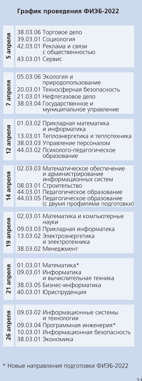 Сроки регистрации студентов на ФИЭБ-2022 — с 15 марта по 25 апреля 2022 г.