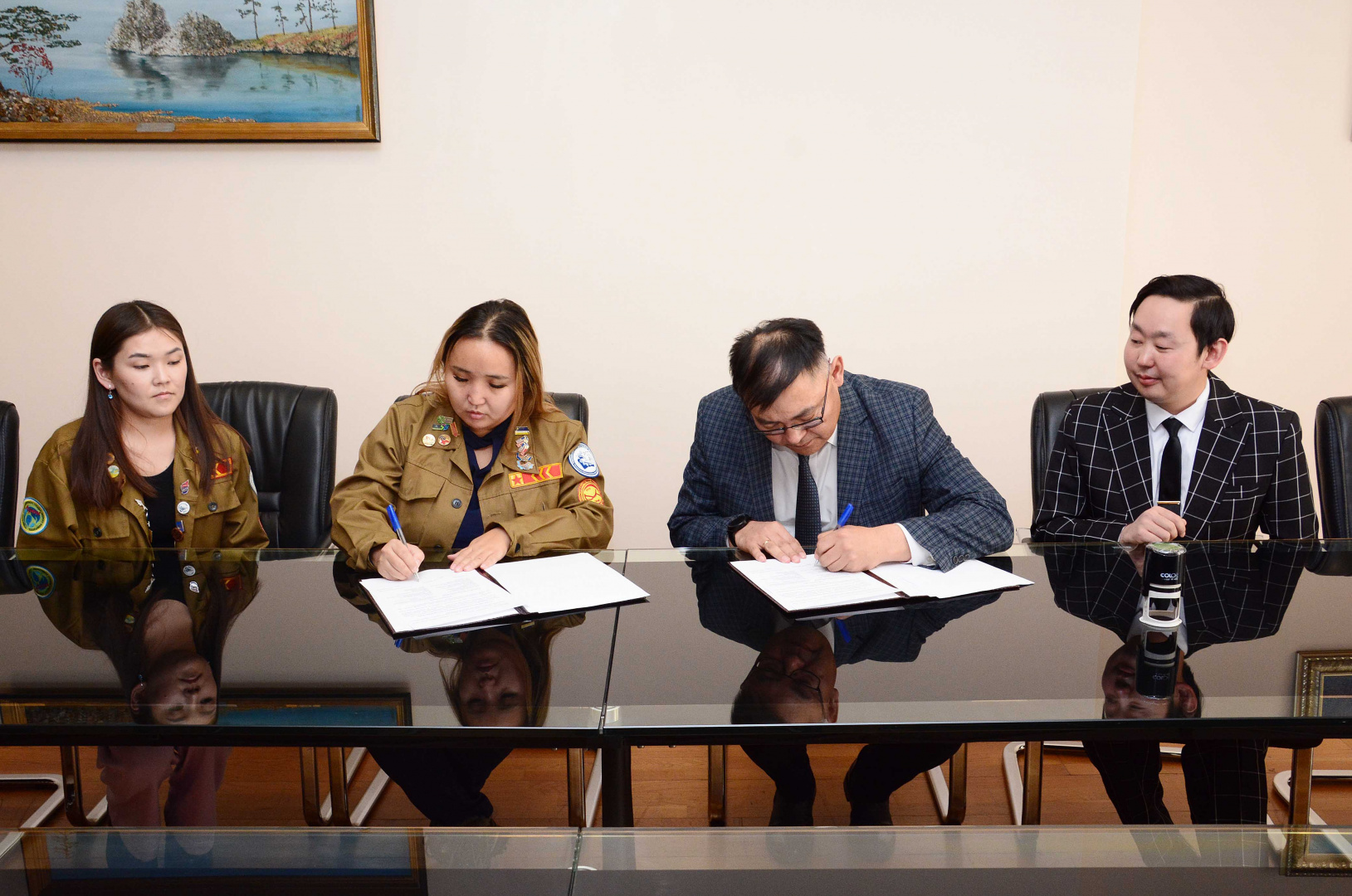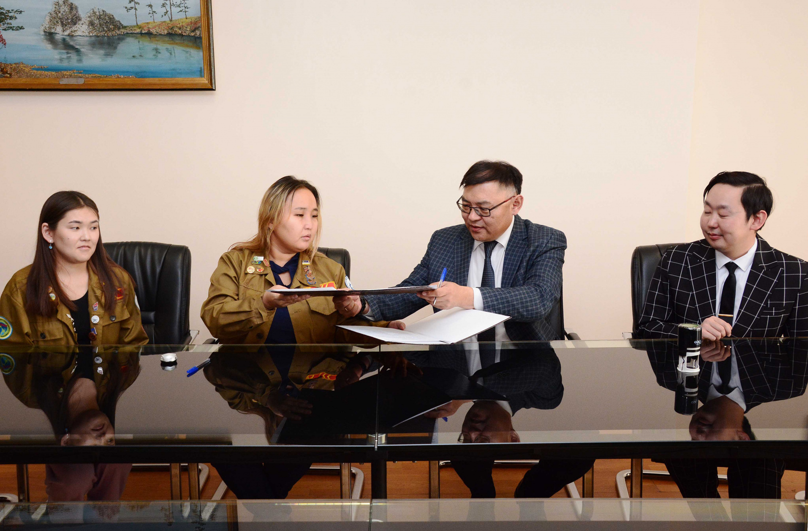 В Бурятском государственном университете 4 апреля состоялась встреча ректора БГУ Дамдинова Алдара Валерьевича и руководителя регионального штаба российских студотрядов Зандановой Елены Ефимовны, где было подписано соглашение о сотрудничестве.