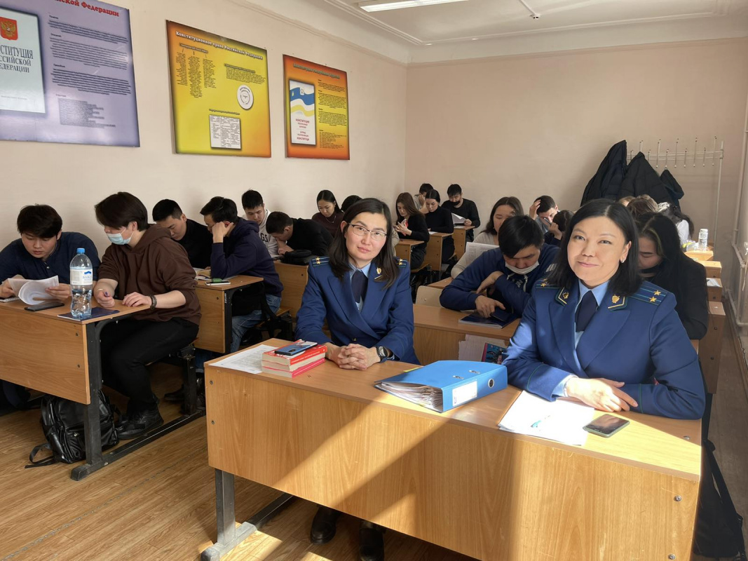 4 апреля для студентов 4 курса Юридического факультета, Бурятского государственного университета им. Доржи Банзарова состоялось практическое занятие с прокурором апелляционного отдела, советником юстиции - Амбаевой Ириной Доржиевной и прокурором кассационного отдела, советником юстиции - Тыхеевой Ольгой Владимировной.