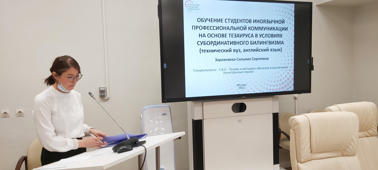 Аспирантка БГУ Заровняева Сильвия Сергеевна успешно защитила кандидатскую диссертацию «Обучение студентов иноязычной профессиональной коммуникации на основе тезауруса в условиях субординативного билингвизма (технический вуз, английский язык) по специальности 5.8.2. Теория и методика обучения и воспитания (иностранные языки). Научный руководитель – Орбодоева Л.М., к.п.н., доцент кафедры перевода и межкультурной коммуникации ИФИЯиМК БГУ. Защита прошла 1 марта 2022 г. в диссертационном совете Московского городского педагогического университета.
