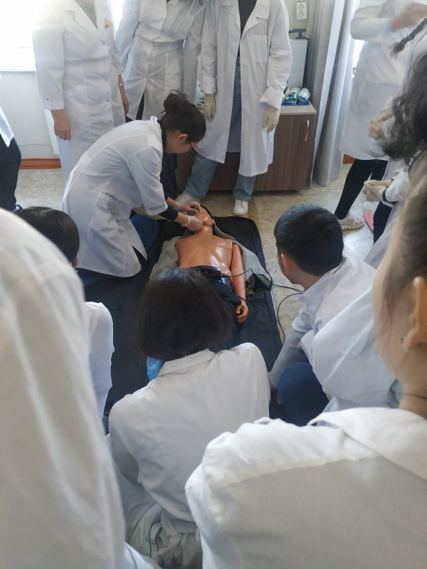 В аккредитационно-симмуляционном центре присутствовало 25 человек, ввиду ограниченной площади. Директор центра Бадлеева М.В. провела экскурсию и показала что делать в различных клинических ситуациях на примере манекенов-имитаторов.