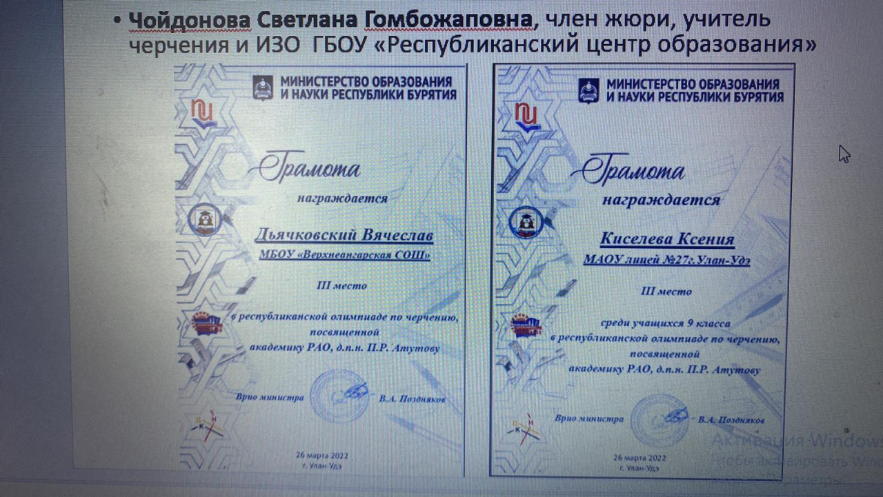 Результаты олимпиады показали хорошую подготовку учащихся по черчению и компьютерной графике. Лучшие результаты по черчению показали учащиеся г. Северобайкальска, Кижингинского и Иволгинского районов.
