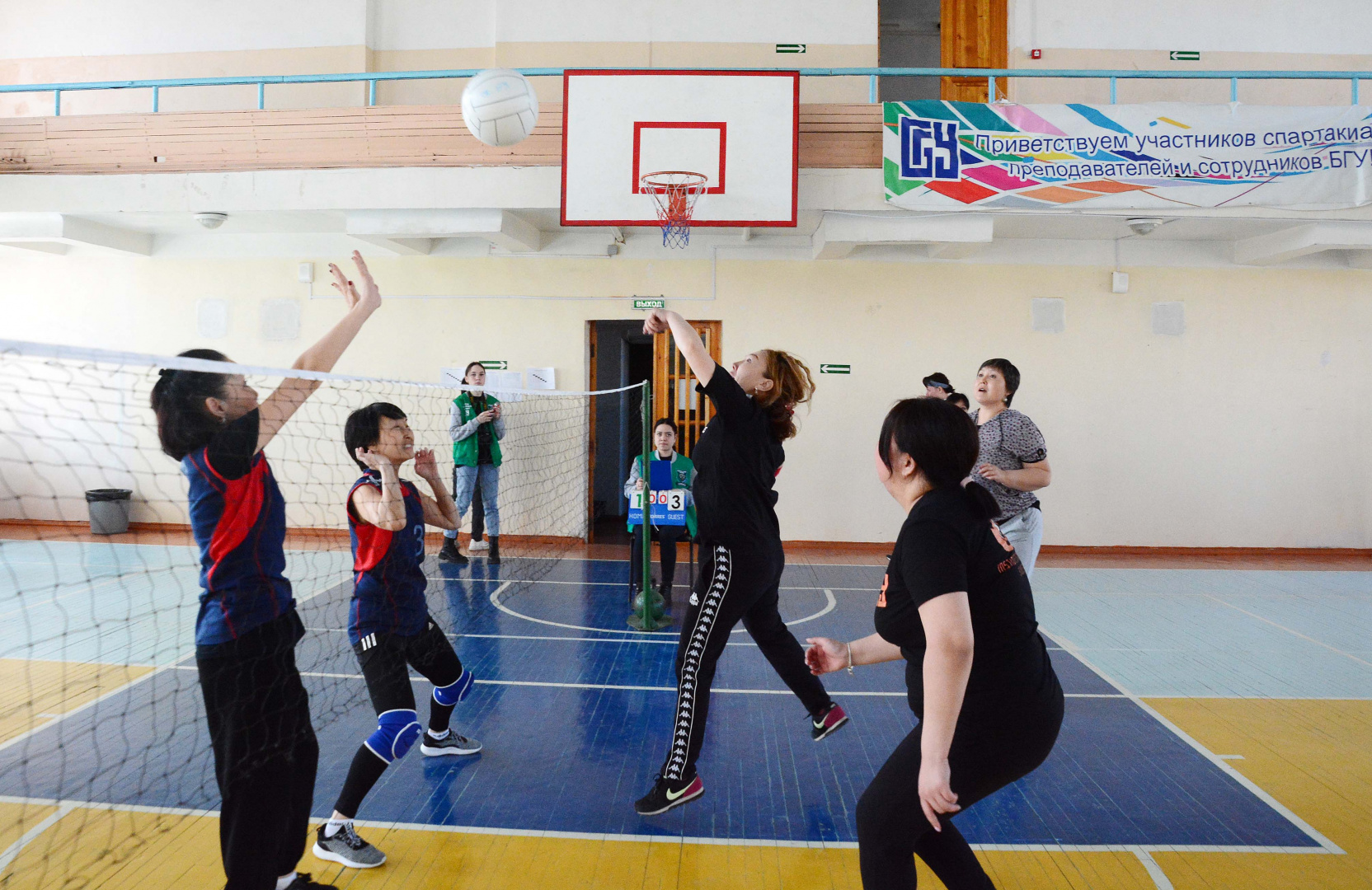В спартакиаду преподавателей и сотрудников Бурятского государственного университета имени Доржи Банзарова, в рамках празднования 90-летия БГУ, включен удивительный вид спорта - мини- волей, получивший широкое распространение благодаря своей простоте: понятные правила, легкий мяч, низкая сетка и широкая площадка для игры. 16 и 17 апреля в Спортивном зале Дома Спорта ул. Куйбышева 1. проходили увлекательные и захватывающие встречи женских и мужких команд преподавателей и сотрудников. 13 женских и 10 мужских команд общей численностью участников более 120 человек участвовали в соревнованиях.