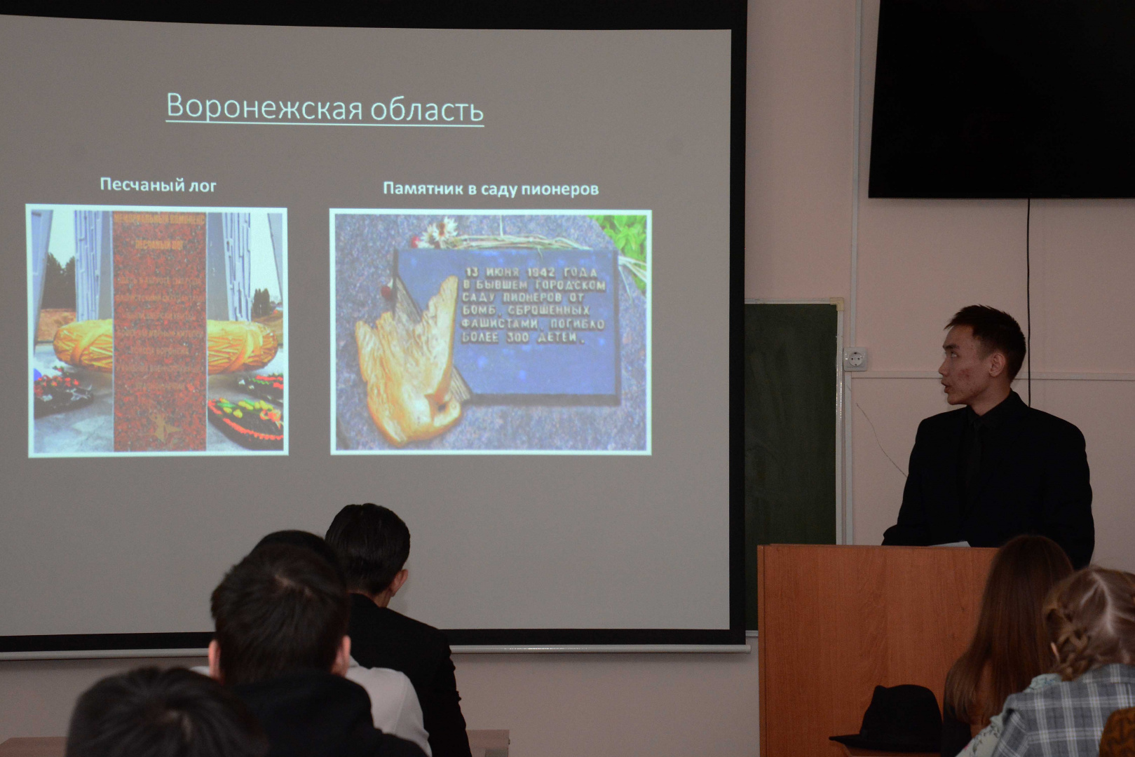 Студенческим патриотическим клубом «Я горжусь» организован урок, посвященный Дню единых действий в память о геноциде советского народа от немецко-фашистских захватчиков в годы Великой Отечественной войны. Организаторы мероприятия преследовали цель сохранить историческую правду о преступлениях нацистов и их пособников в отношении мирных советских граждан на оккупированной территории Советского Союза.