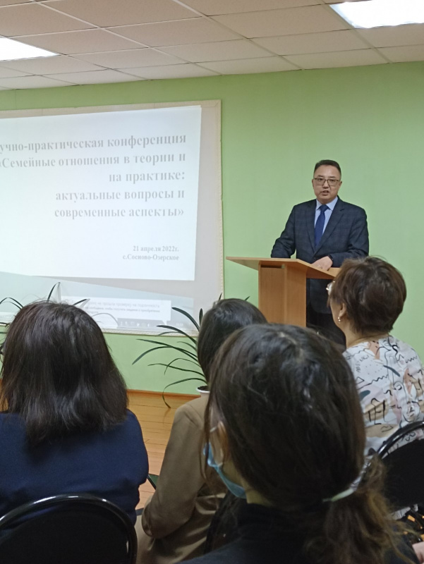21 апреля 2022 года в с.Сосново-Озерское Еравнинского района кафедра теории социальной работы совместно с администрацией Еравнинского района провели региональную научно-практическую конференцию на тему «Семейные отношения в теории и на практике: актуальные вопросы и современные аспекты». На конференции присутствовали педагоги, психологи, специалисты по социальной работе, специалисты органов опеки и попечительства, отдела по делам несовершеннолетних, Комиссии по делам несовершеннолетних, врачи.