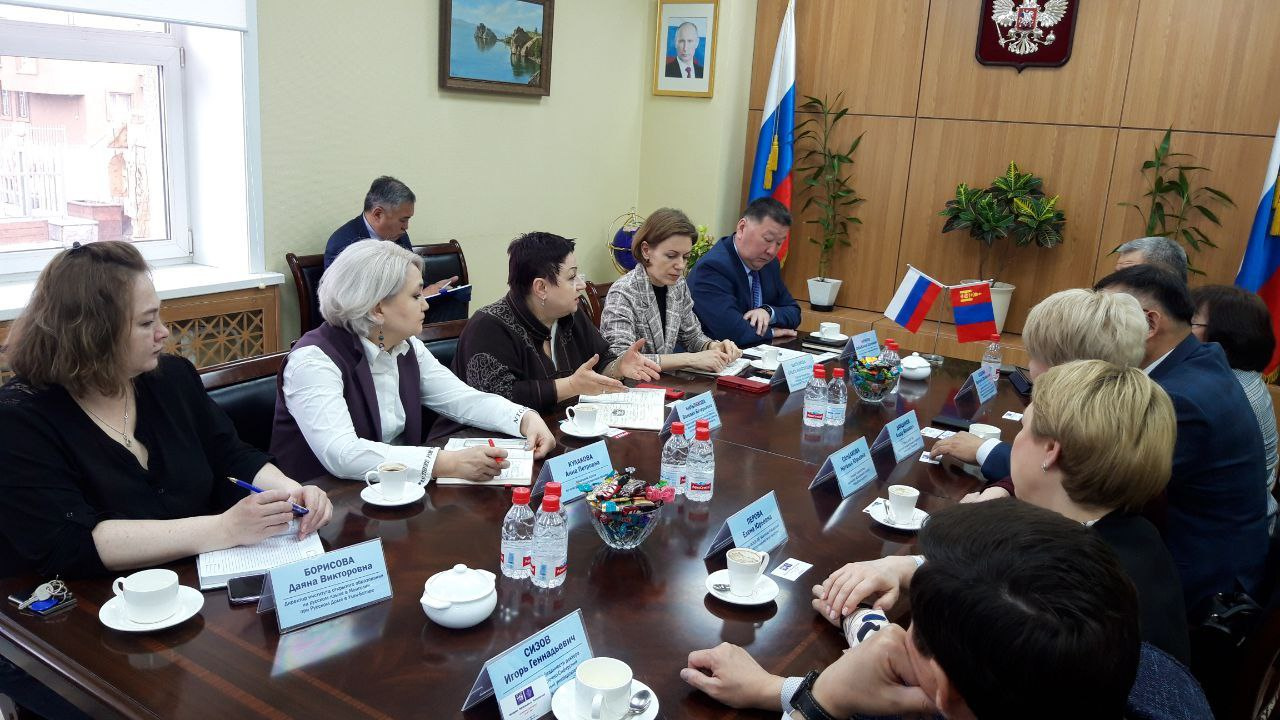 На встрече с руководителем Представительства Россотрудничества в Монголии Амгаланом Ринчиновичем Базархандаевым были обсуждены самые актуальные вопросы взаимодействия вузов РБ с Русским Домом в Монголии – усиление присутствия бурятских вузов в монгольском образовательном пространстве посредством организации курсов русского языка для монгольских абитуриентов и учителей русского языка монгольских школ, летних программ на Байкале, олимпиад по русскому языку как иностранному, тематических школ и научных исследований в области экологии, тяжелой промышленности, рекультивации почвы и др.