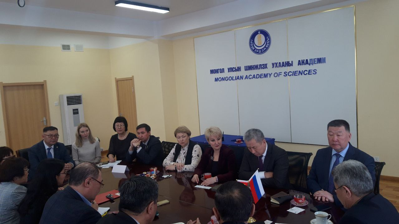 Плотная программа визита делегации включала посещение Представительства Россотрудничества в Монголии, Монгольской Академии наук, Совместной Монголо-Российской школы и монгольских вузов-партнеров бурятских университетов.