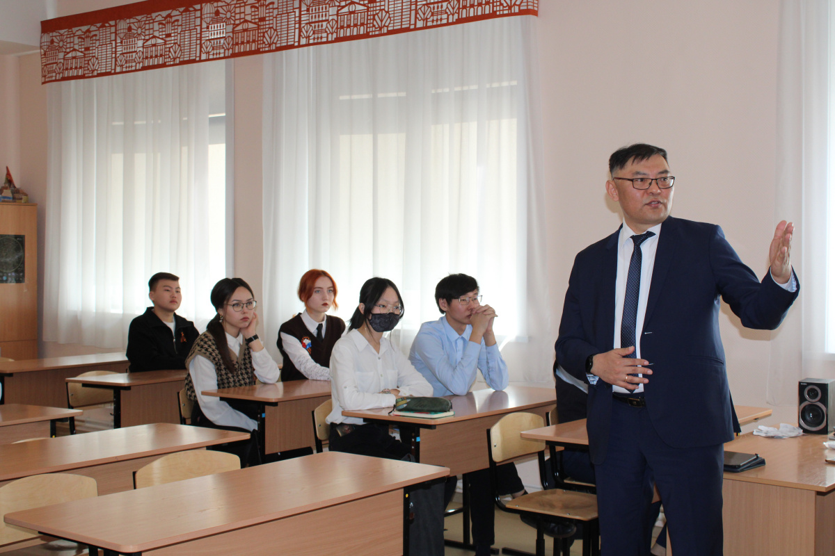 29 апреля ректор БГУ Алдар Валерьевич Дамдинов в рамках второй Всероссийской акции «Поделись своим Знанием. Новые горизонты» провел урок у учащихся 10 класса гимназии №33, г. Улан-Удэ. Тема урока «Личность в истории России. Ученый – монголовед Д. Банзаров».
