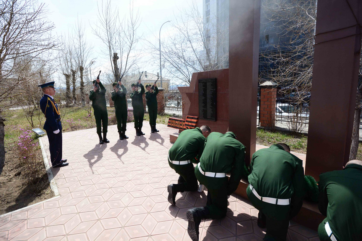 По традиции, был возложен венок к мемориальной доске и мемориалу, посвященному студентам и преподавателям БГПИ, ушедшим на фронт в 1941-1945 гг. Почётный караул из военной части почтил память героев троекратным залпом.