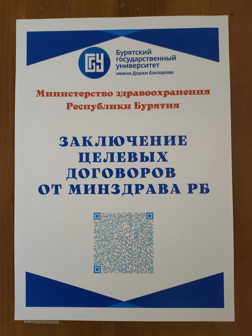 Сегодня министр здравоохранения РБ Евгения Лудупова встретилась с ректором Бурятского государственного университета Алдаром Дамдиновым для обсуждения работы по целевому набору. Для удобства абитуриентов и их родителей в главном корпусе Бурятского государственного университета по адресу Смолина 24 а открылся кабинет для целевиков медицинских ВУЗов.