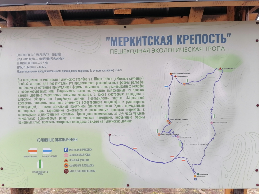 И главным объектом экскурсии стали Тугнуйские столбы - уникальное место где произрастает реликтовая роща Абрикоса сибирского (Armeniaca sibirica (L.) Lam.), занесённый в Красную книгу Бурятии. Это скальное образование на северо-западном краю Тугнуйской долины, недалеко от границы Мухоршибирского, Тарбагатайского и Селенгинского районов Бурятии. С возвышенностей горы-крепости просматривается вся Тугнуйская степь, реки Хилок и Чикой. На месте, у подножия скал-холмов, образующих собой подкову, местные власти создали зачатки туристической инфраструктуры.