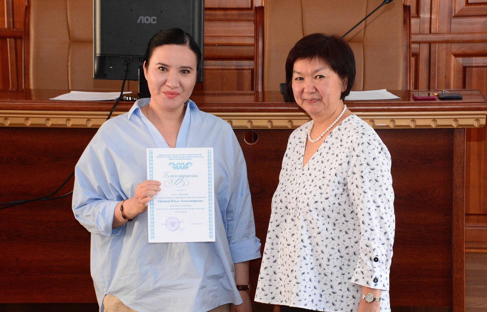 Программу Дня студенческой науки БГУ-2022 продолжили доклады победителей конкурса научных работ студентов БГУ. Результаты своих научных исследований представили Токтохоева Любовь, студентка Факультета биологии, географии и землепользования, и Таханова Инна, студентка 4 курса Педагогического института.