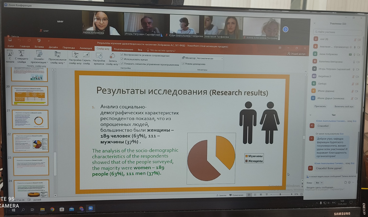 Студенты 3 курса специльности "Фармация" медицинского института БГУ приняли участие во Всероссийской научно-практической конференции молодых учёных и студентов с международным участием «Актуальные вопросы фармацевтических и естественных наук», которая проходила 25 мая 2022 г. в онлайн-формате на базе фармацевтического факультета Иркутского государственного медицинского университета.