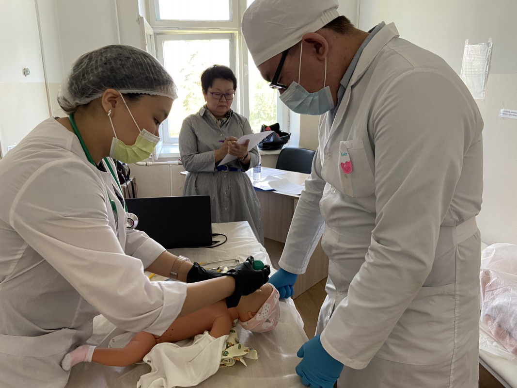 Студенческим командам был составлен маршрут по разным станциям: Тестовый контроль, практическая задача, СЛР новорожденного на роботе, практические навыки на тренажерах и манекенах, неотложное состояние на акушерском фантоме с использованием цифровых технологий.