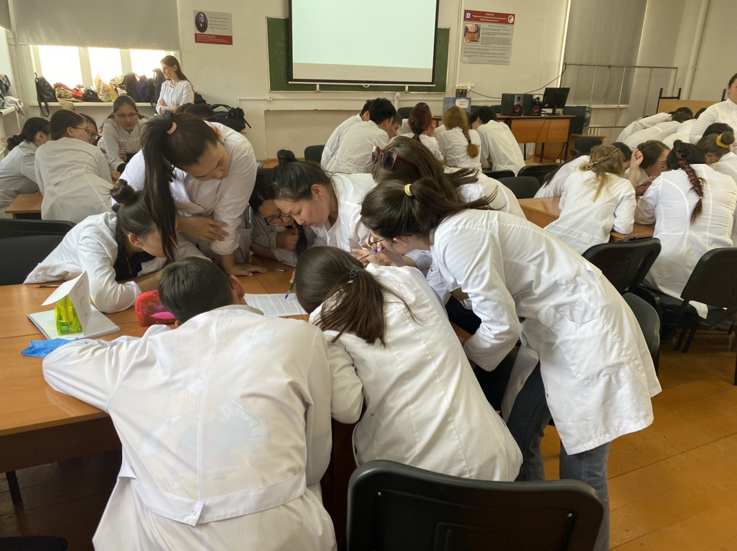 Проведена олимпиада по биохимии в Медицинском институте, среди студентов 2 курса. Организаторами олимпиады являются преподаватели кафедры фармакологии, клинической фармакологии с курсом биохимии, председатель жюри профессор, д.б.н. Жамсаранова Сэсэгма Дашиевна. В олимпиаде приняли участие 8 команд. На всех проводимых этапах, согласно утвержденному положению олимпиады, студенты показали хорошие знания по биохимии, у всех команд жюри отметили стремиление к победе. Первый этап был "Блиц-опрос", где студенты на скорость выбирали правильные ответы на поставленные вопросы, затем было задание подобрать и описать основные характеристики метаболических процессов в организме при различных ситуациях. Следующий этап - решение ситуационных задач. И на заключительном этапе - студенты продемонстрировали практические навыки, определяя наличие в биологических жидкостях различных метаболитов.