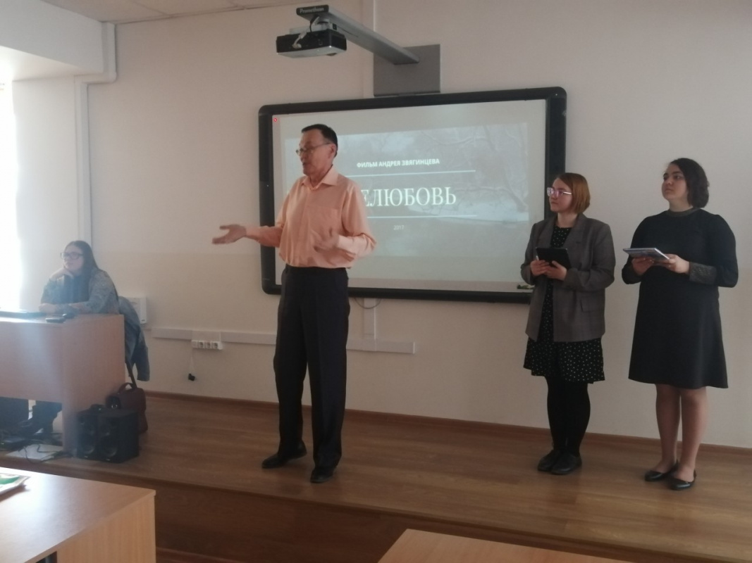 24 мая 2022 г. в аудитории 8501 состоялись просмотр и обсуждение кинофильма режиссера Андрея Звягинцева «Нелюбовь», получившего Приз жюри на 70-ом Каннском кинофестивале. Нам показалось интересным предложить вниманию наших студентов фильм, ставший заметным культурным явлением современной России. Организатор мероприятия – д-р филол. наук, проф. А. П. Майоров, ведущие – студентки гр. 18100 отечественного отделения ИФИЯиМК Кристина Осипова, Яна Савина, Ярослава Леонова. Открыла Дни славянской письменности и культуры в БГУ М. Б. Матанцева, зав. кафедрой русского языка и общего языкознания, канд. филол. наук, доц. Присутствовали Э. В. Семенова, директор ИФИЯиМК, канд. филол. наук, доц., студенты ИФИЯиМК и ВИ.