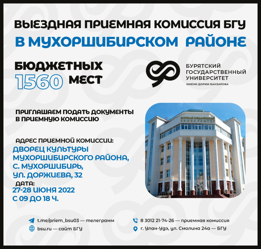 - консультацию по всем интересующим вопросам об условиях поступления в ФГБОУ ВО "БГУ имени Доржи Банзарова";