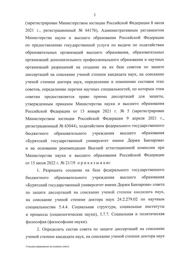 о чем свидетельствует приказ Министерства науки и высшего образования РФ от 20.07.22, №893/нк.