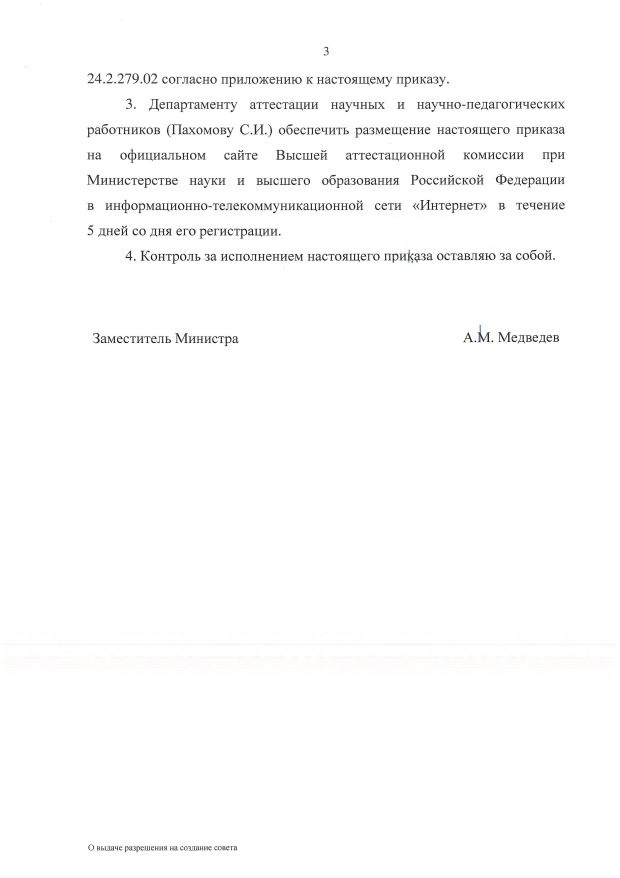 И мы с большой радостью хотим сообщить о создании на базе нашего университета совета по защите диссертаций на соискание ученой степени кандидата наук, на соискание ученой степени доктора наук 24.2.279.02 по научным специальностям: