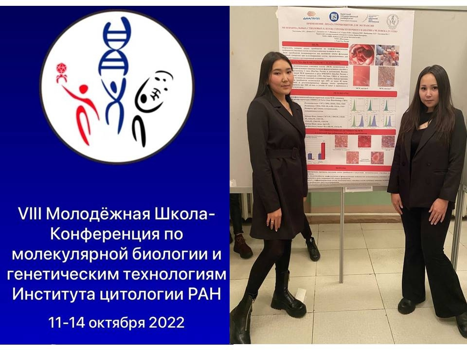 Они представили доклад на тему «Применение лизата тромбоцитов для экспансии мезенхимальных стволовых клеток стромы пупочного канатика человека in vitro», подготовленный под научным руководством к.б. н. Цыбденовой Арюны Пурбодоржиевны и к. б.н. Абашеева Романа Юрьевича.