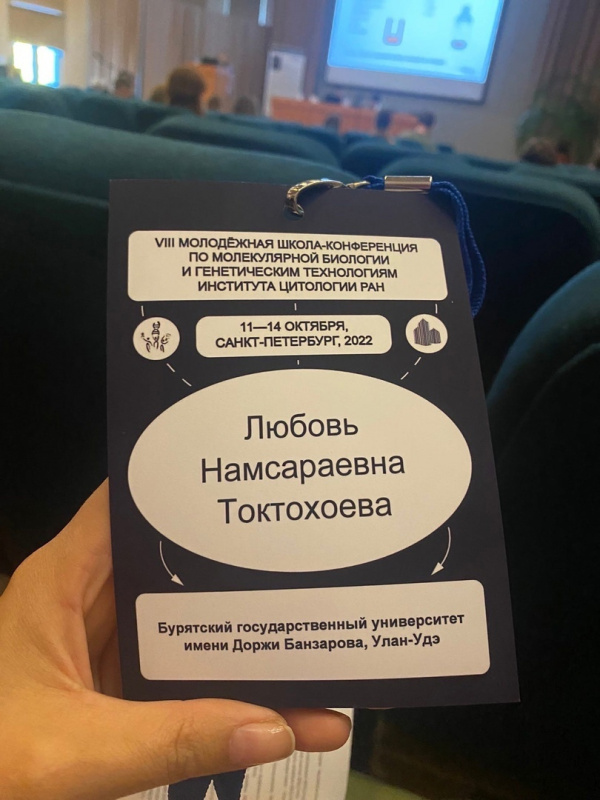 С 11 по 14 октября 2022 г. в Институте цитологии РАН (Санкт-Петербург) прошла VIII МОЛОДЕЖНАЯ ШКОЛА-КОНФЕРЕНЦИЯ по молекулярной биологии и генетическим технологиям, организованная Советом молодых ученых и специалистов Института цитологии РАН, в которой приняли участие студентки 3 и 2 курсов Факультета биологии, географии и землепользования Токтохоева Любовь и Демина Евгения.