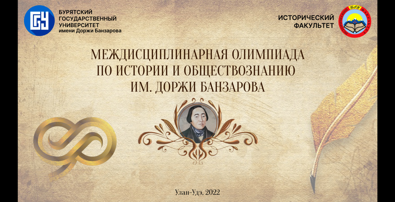 5 ноября 2022 г. на историческом факультете БГУ им. Д. Банзарова в рамках сетевого проекта «Умные каникулы» состоялась традиционная XIV Междисциплинарная олимпиада по истории и обществознанию имени Доржи Банзарова, организованная кафедрой истории Бурятии, для участия в которой зарегистрировались 202 учащихся 9-11 классов школ и студентов 1-4 курсов учреждений СПО.