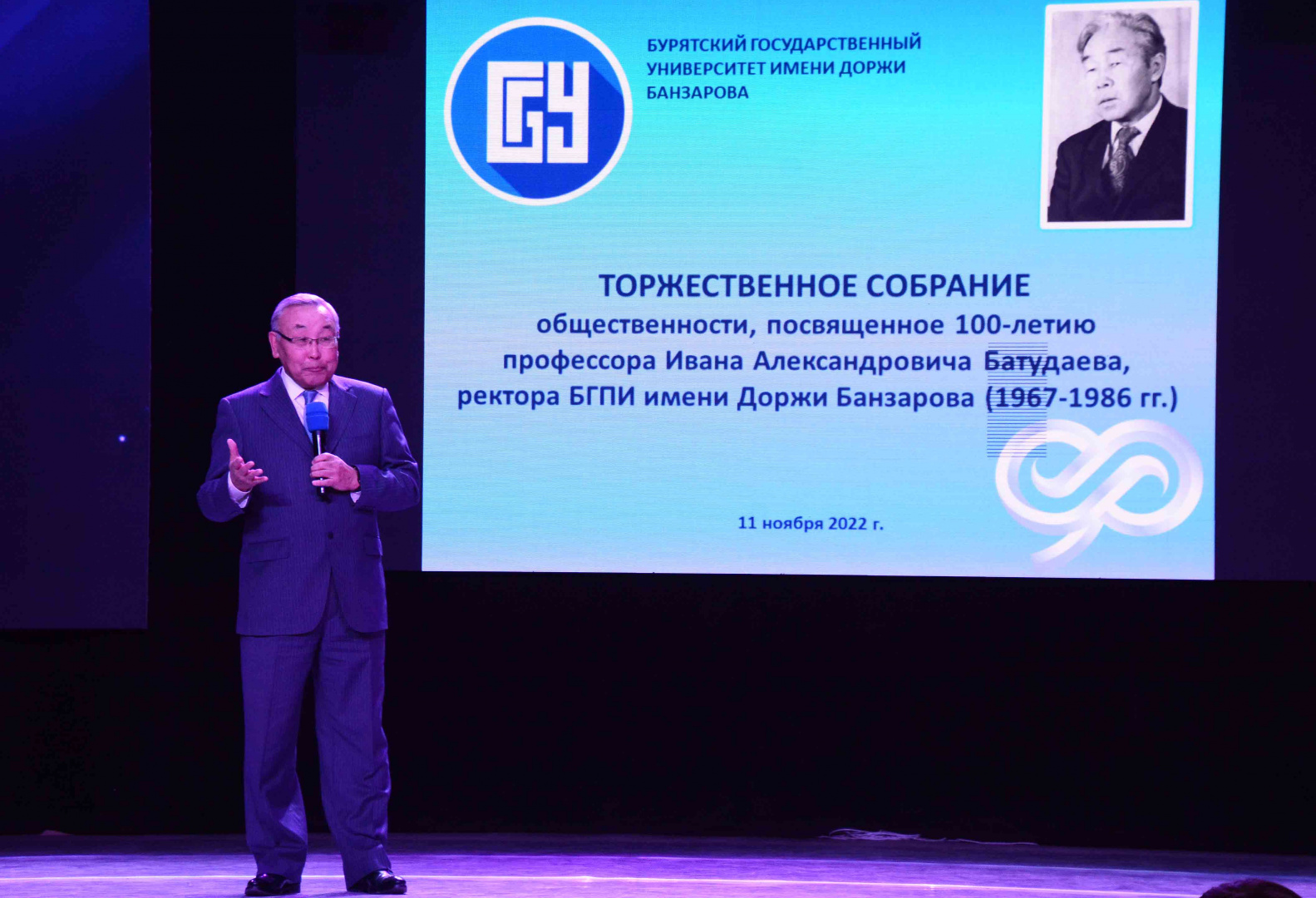 11 ноября в актовом зале БГУ прошло торжественное собрание общественности Республики Бурятия, посвящённое 100-летию И.А.Батудаева.