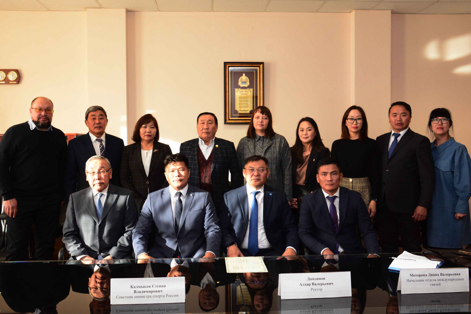 11 ноября прошла встреча с делегацией Государственного комитета по физической культуре и спорту Монголии с ректором БГУ Алдаром Валерьевичем Дамдиновым и советником министра спорта Российской Федерации Степаном Владимировичем Калмыковым.
