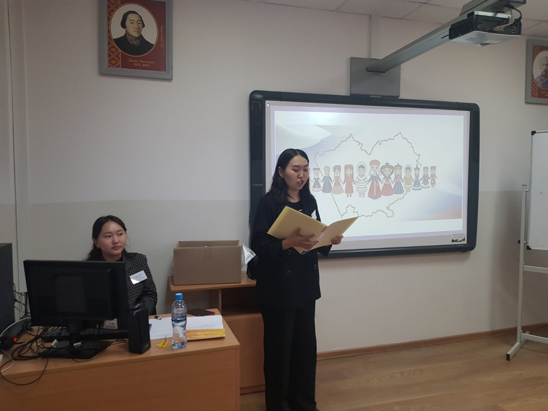 - «Популяризация бурятского языка в молодёжной среде», докл. главный специалист отдела поддержки молодёжных инициатив Министерства спорта и молодёжной политики Республики Бурятия Малютина Аюна Бимбажаповна;