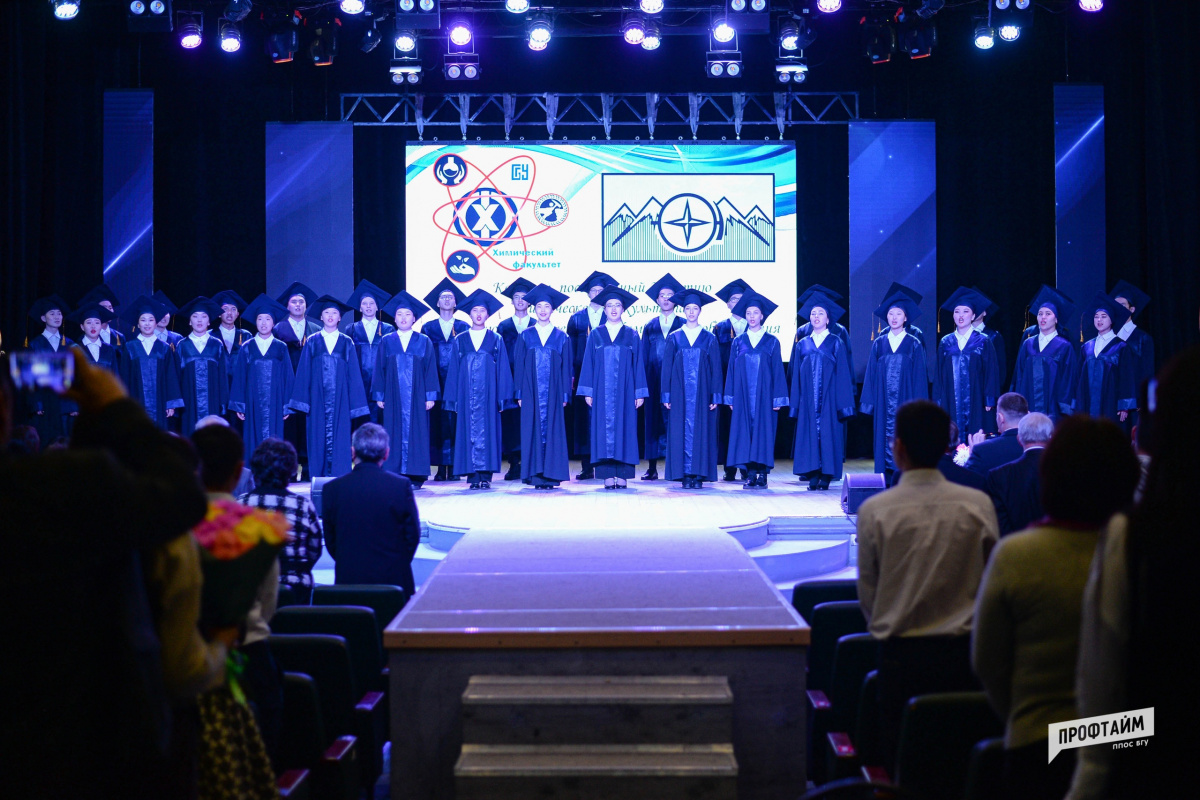 Открыл торжественное мероприятие хор студентов Химического факультета, исполнившие студенческий гимн «Гаудеамус».