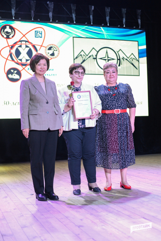 Почётным преподавателям факультета докторам химических наук Базаровой Жибземе Гармаевне и Могнонову Дмитрию Марковичу вручили медали, подтверждающие присвоение звания «Заслуженный профессор БГУ». Действующие преподаватели факультета отмечены Почетными грамотами и Благодарственными письмами.