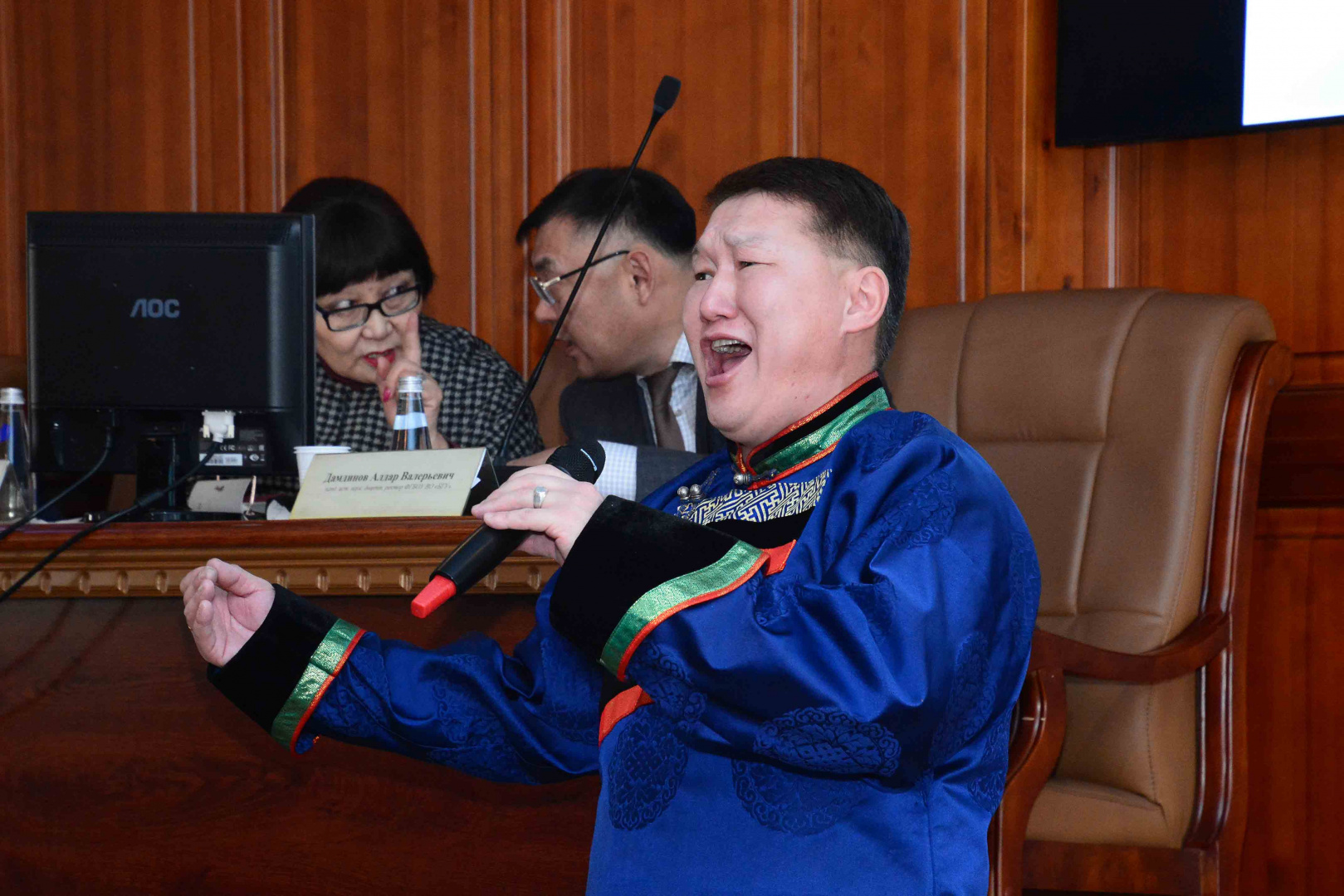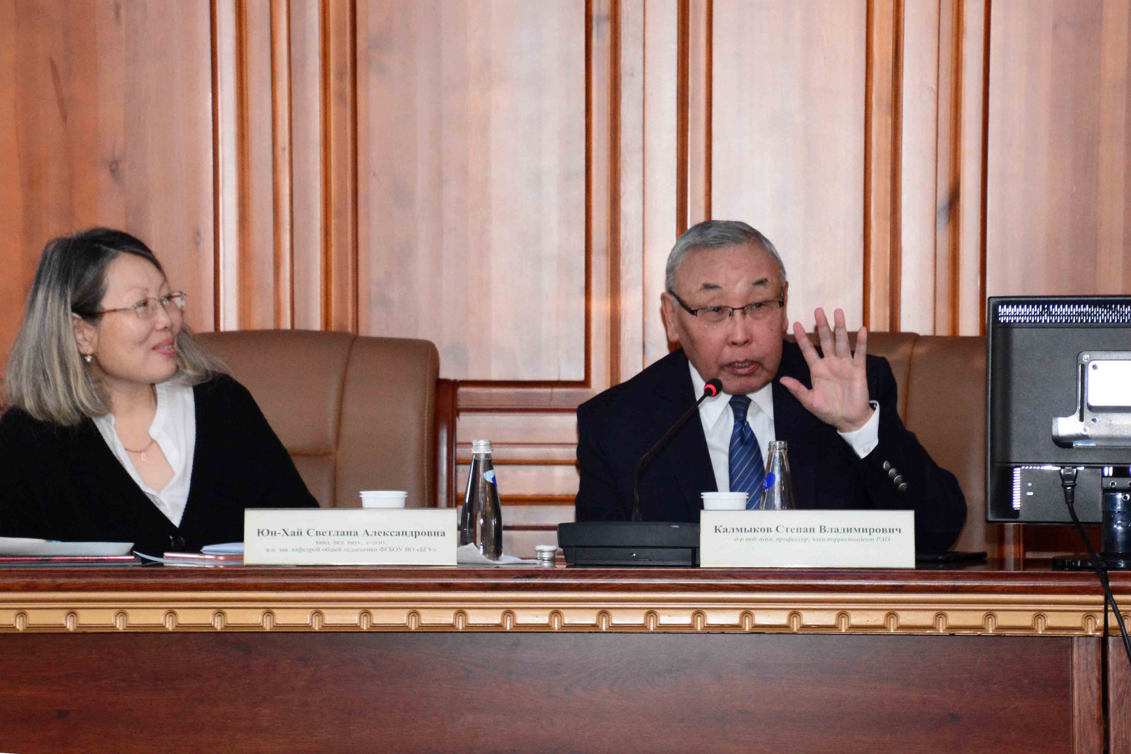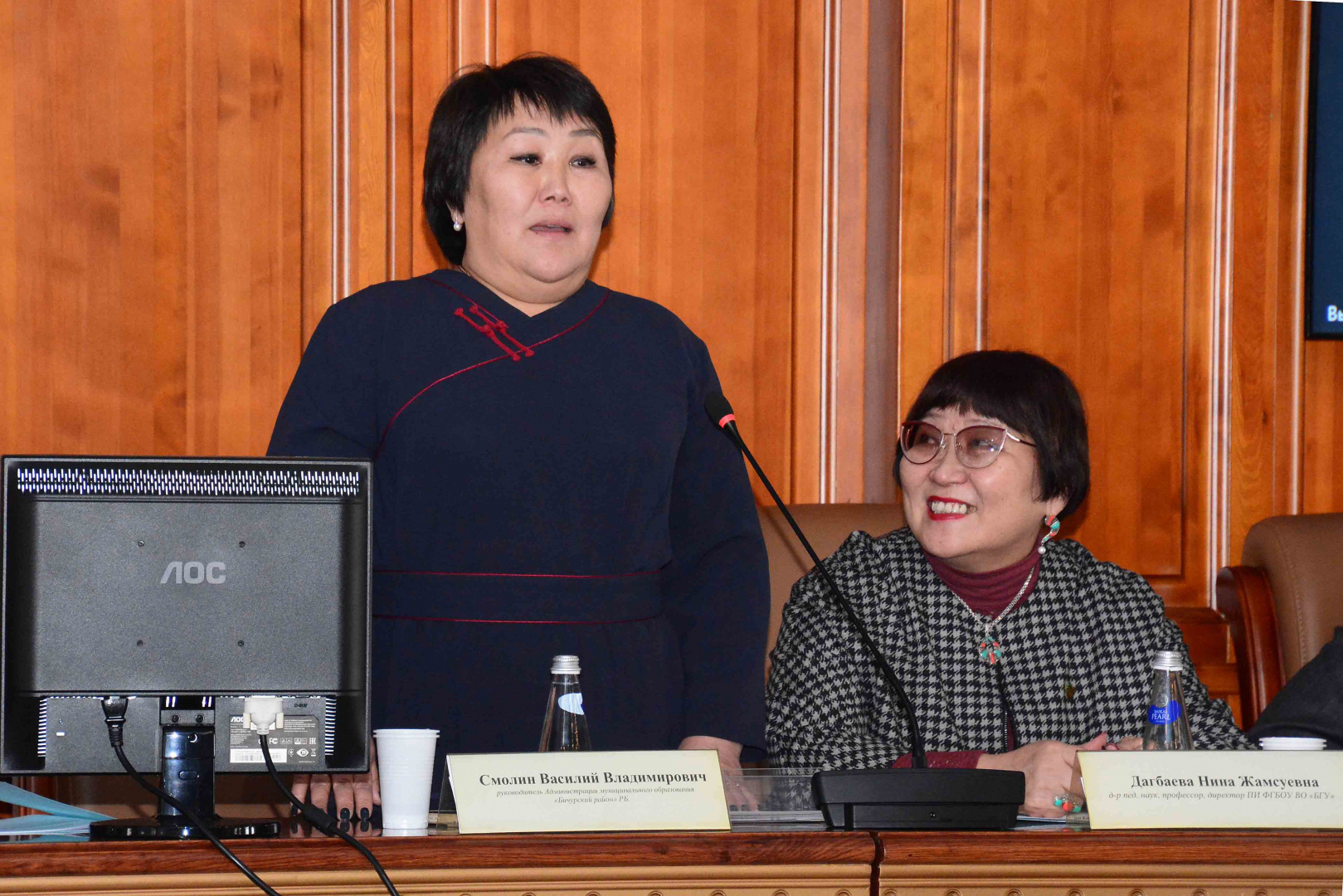 С докладами выступили: Юн-Хай С.А., к.п.н., доцент, и.о. заведующего кафедрой общей педагогики Бурятского государственного университета им. Д.Банзарова, Цыренов В.Ц., д.п.н., доцент, Фомицкая Г.Н., д.п.н., профессор кафедры общей педагогики, директор Сетевого университетского образовательного округа Бурятского государственного университета им. Д.Банзарова.