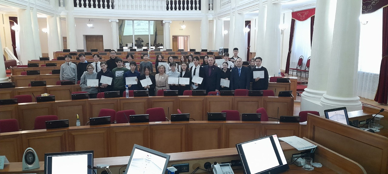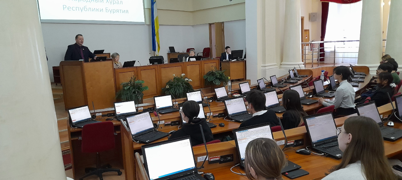 Учащимся рассказали об истории представительного органа, о его функциях на сегодняшний день, а также позволили ученикам почувствовать себя депутатами и провести собрание в Большом зале заседаний Народного Хурала.