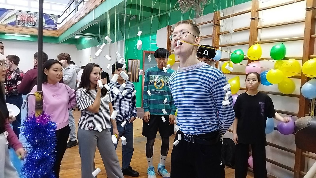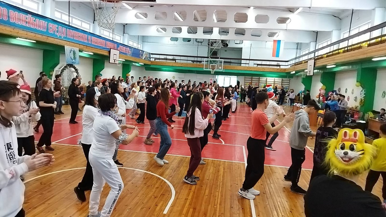 После общего построения выпускник «биохима» 1984 года Евгений Дайндапов подарил всем участникам прекрасный музыкальный подарок. Под песню «Чистые пруды» все участники, обнявшись, подпевали, а вторая песня «Сокровища Черного моря» запустила наш огромный новогодний танец-змейку!