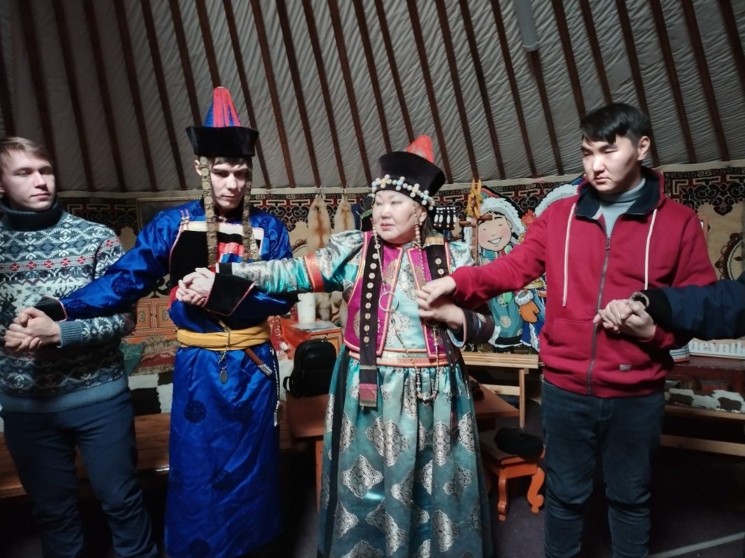 В ходе экскурсии студентам были продемонстрированы старинные традиции бурят: обработка шерсти барана и другое. В юрте наглядно было показано и рассказано о быте, традициях и культуре бурят. Одним из самых запоминающихся моментов стала лекция знаменитой Эрдэни-Дари Бадмаевны о Цанит Хамбо ламе, наставнике Далай ламы XIII Агване Доржиеве и Хамбо ламе, лекаре тибетской медицины Чойнзон Доржи Иролтуеве. Увлекательным был и мастер класс по национальной настольной игре "Шагай Наадан", где студенты попробовали сыграть и даже выиграть утешительные призы.