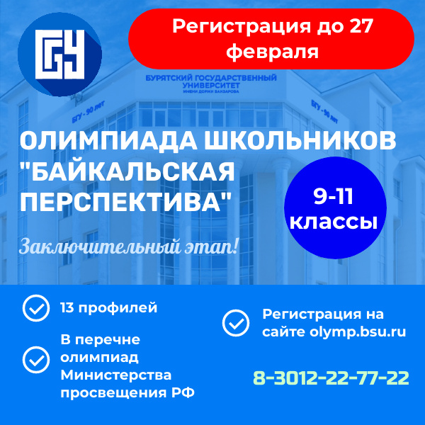 Открыта регистрация на заключительный этап олимпиады школьников "Байкальская перспектива" (по ссылке)
