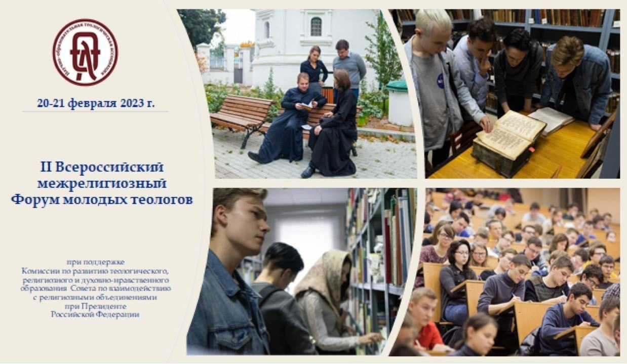 20 и 21 февраля 2023 года состоялся Всероссийский форум молодых теологов. Форум прошел на федеральных и региональных площадках на базе университетов и духовных школ НОТА в Москве, Санкт-Петербурге, Казани, Саратове, Краснодаре, Улан-Удэ, Махачкале, Курске, Орле и Туле.