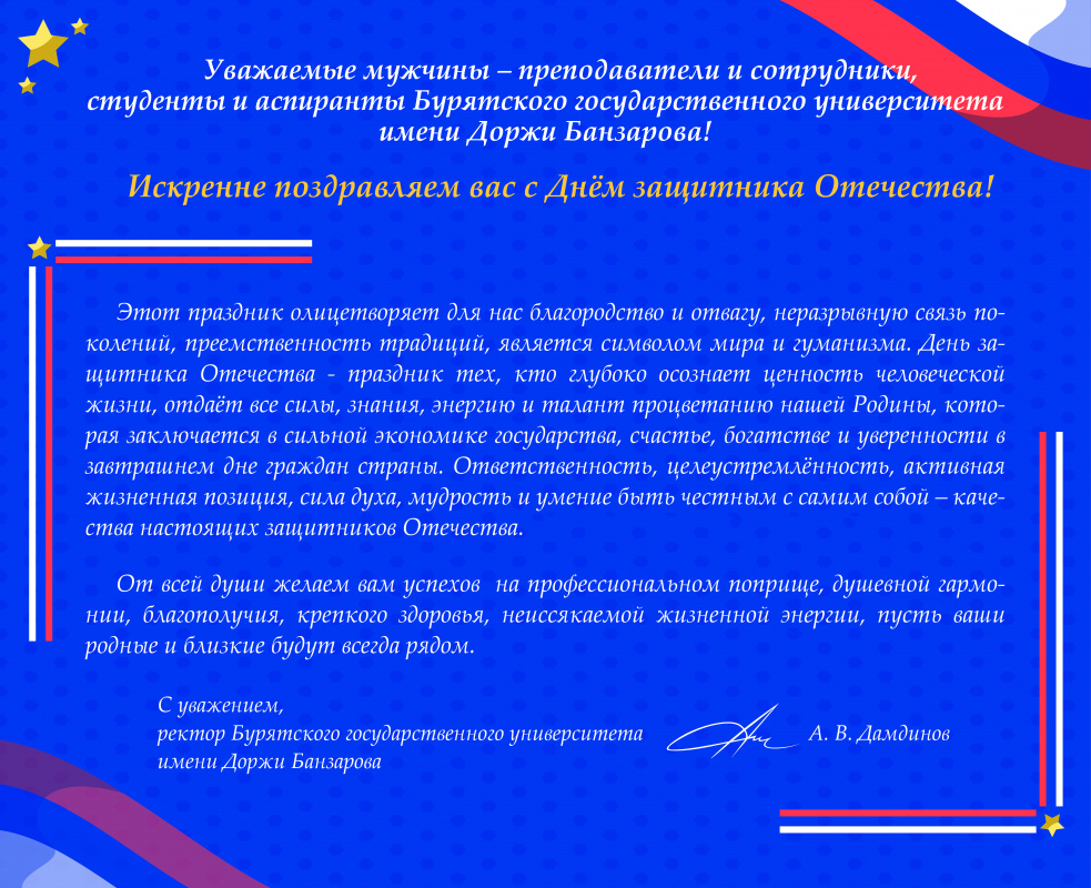 Уважаемые мужчины - преподаватели и сотрудники, студенты и аспиранты Бурятского государственного университета имени Доржи Банзарова!