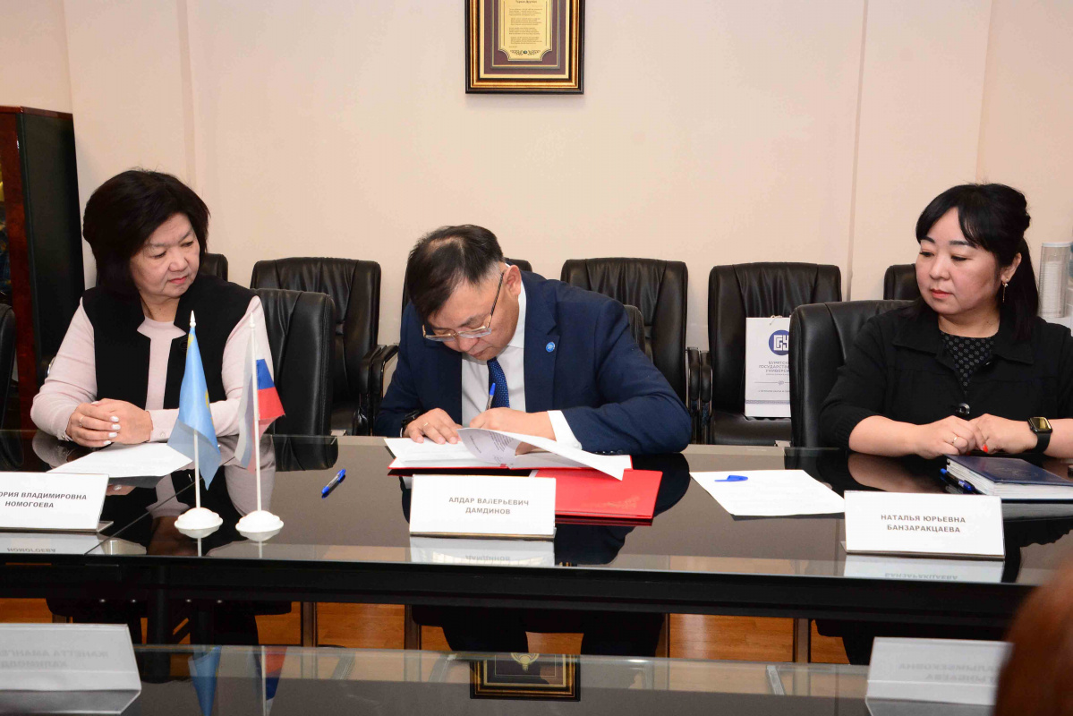 Сегодня 2 марта 2023 года в зале переговоров состоялась встреча с представителями «Восточно-Казахстанского университета им. Сарсена Аманжолова» (г. Усть-Каменогорск, Республика Казахстан), итогом которой стало торжественное подписание договора о сотрудничестве. Наш университет на встрече представили ректор А.В. Дамдинов, проректор по научно-исследовательской работе В.В. Номогоева, начальник отдела международных связей Н.Ю. Банзаракцаева. Со стороны гостей присутствовали старший преподаватель Булгынбаева Аяулы Калымбековна и начальник по социальным вопросам и воспитательного отдела, помощник ректора, старший преподаватель Калимолдина Жанетта Амангельдиновна.