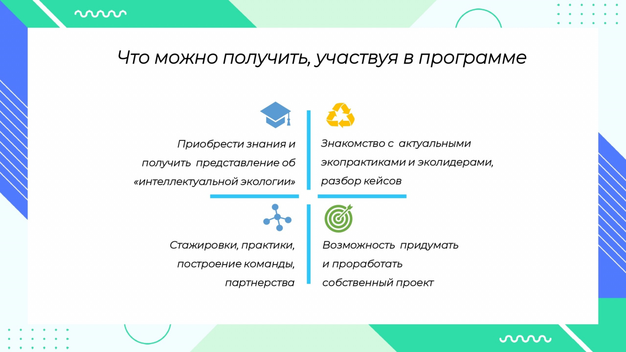 2. Организуют онлайн-обучение для студентов, где представят самые успешные экопрактики с участием экспертов/эколидеров и разбором кейсов.