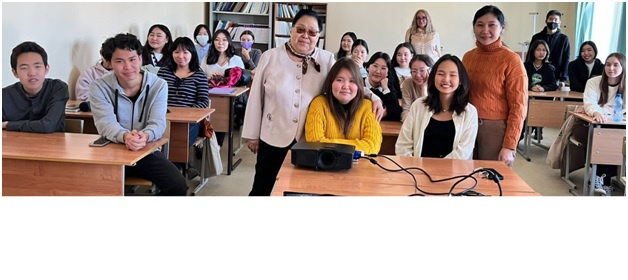 В рамках празднования «Франкофонии-2023» 28 марта 2023г. профессор кафедры немецкого и французского языков БГУ Доржиева Г. С. приняла участие в работе круглого стола «Проектная деятельность обучающихся как фактор формирования разносторонней личности», проводимого кафедрой французской филологии Института зарубежной филологии и регионоведения Северо-Восточного федерального университета им. М.К. Аммосова совместно с международной научно-исследовательской лабораторией «Лингвистическая экология Арктики» СВФУ. Как отмечают организаторы круглого стола: высокий научный уровень мероприятию задал доклад известного специалиста по топонимике, доктора филологических наук, профессора Бурятского государственного университета Галины Сергеевны Доржиевой на тему «Формирование ономастической компетенции учащейся молодежи в условиях взаимодействия вуза и школы». Именитый ученый ознакомил студентов с основными понятиями топонимики, различными подходами к изучению топонимии, представил наиболее интересные факты топонимики, ономастики, показал разноаспектность исследований по топонимике в том числе сопоставительных работ.