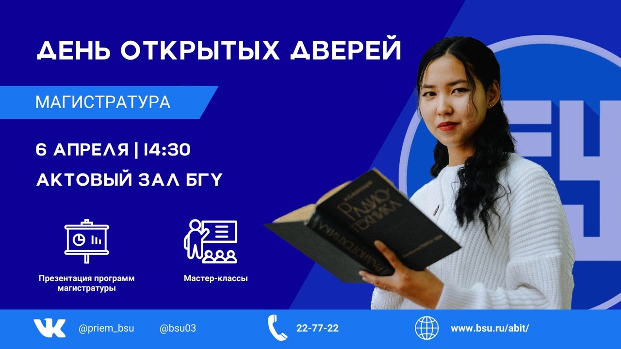 Приглашаем выпускников программ бакалавриата на день открытых дверей Бурятского государственного университета имени Доржи Банзарова!Дата: 6 апреля 2023 г. в 14:30 ч.
