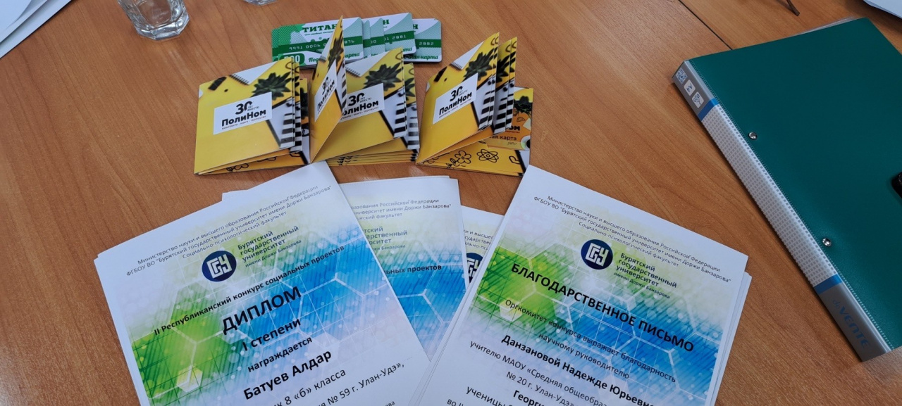 По итогам совещания экспертного совета было отобрано на защиту 11 социальных проектов, выполненных школьниками и студентами СПО г. Улан-Удэ и районов Республики Бурятия. Защита проектов состоялась 12 мая 2023 года в Бурятском государственном университете имени Доржи Банзарова в конференц-зале Главного корпуса.