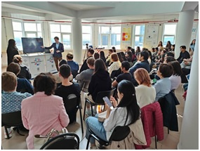 17 мая в Точке кипения БГУ кафедра перевода и межкультурной коммуникации провела 4-ю сессию Творческой лаборатории студентов и выпускников. В целом работа лаборатории уникальна тем, что бакалавры IV курса, магистранты и выпускники прошлых лет делятся со студентами теоретическими и эмпирическими знаниями, т.е. всем тем, в чем они преуспели. Уникальность данной сессии состояла в самой теме «Теория познания в практике: от моно- к транссфере». Основной лейтмотив мероприятия – каковы форматы междисциплинарных стратегий изучения предмета и КАК можно самореализовываться, применяя системную совокупность знаний. Первую часть «Когнитологияvs. лингвокогнитология. Теория познания vs. системно мыслящий переводчик» продемонстрировали 6 магистрантов гр. 18420м, вторую – три выпускника 2013, 2010 и 2008 гг. выпуска.