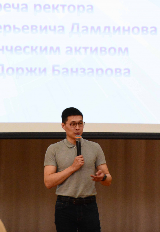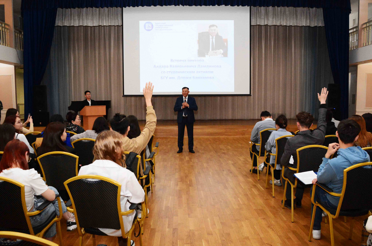 В бальном зале университета 22 мая прошла встреча ректора БГУ Дамдинова Алдара Валерьевича со студенческим активом.
