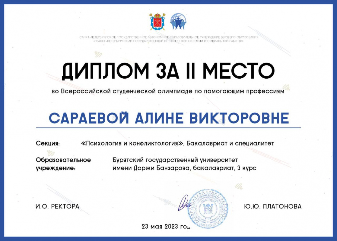 23 мая 2023 года в Санкт-Петербургском государственном институте психологии и социальной работы состоялась Всероссийская студенческая олимпиада по помогающим профессиям (очный этап).