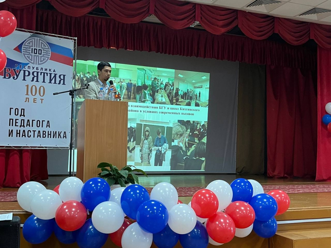 Итоги Года педагога и наставника подвели на учительских конференциях Джидинского, Мухоршибирского, Бичурского и Прибайкальского районов. В мероприятиях конференции Джидинского района приняли участие Цыренова М.Г., директор Института непрерывного образования, к.и.н. и Сидорова Т.В., к.п.н., доц. кафедры общей педагогики. В Мухоршибирском районе учителя тепло встретили Мордовского А.К., к.физ-мат.н, председателя республиканской комиссии ЕГЭ по математике, в Бичуре- Саганова О.Н., директора Института физкультуры, спорта и туризма, в Прибайкалье - Бальжинимаеву Е.П.,к.и.н., председателя республиканской комиссии ЕГЭ по обществознанию.