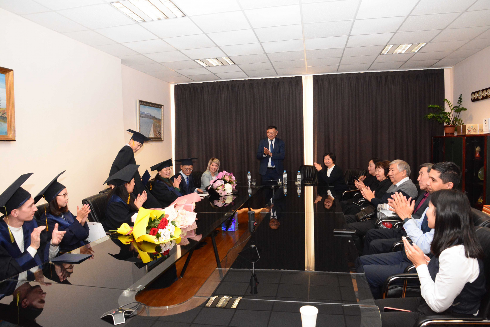 Иностранных аспирантов сердечно поздравила заведующий отделом международных связей Банзаракцаева Наталья Юрьевна. Она поблагодарила выпускников за выбор нашего университета для получения образования третьего уровня - высшей квалификации, за вклад в развитие российской науки и упрочение международных научных связей.